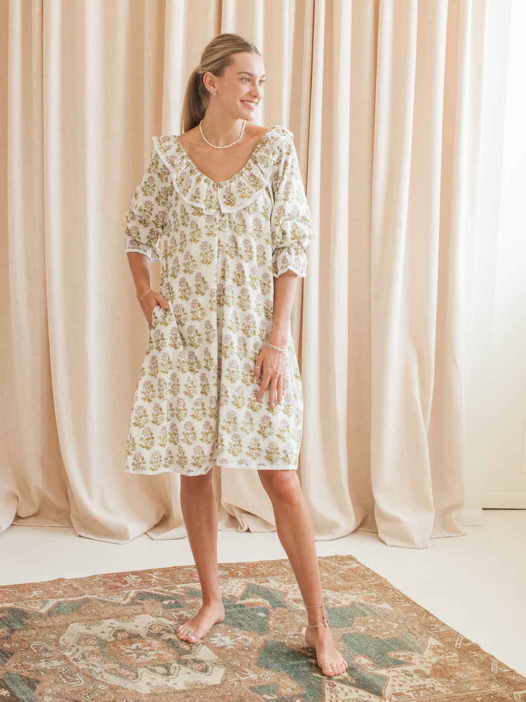 Designed by us, for you. Made by the same female owned workshop that creates our table top collection, each dress is crafted with hand block printed fabrics.