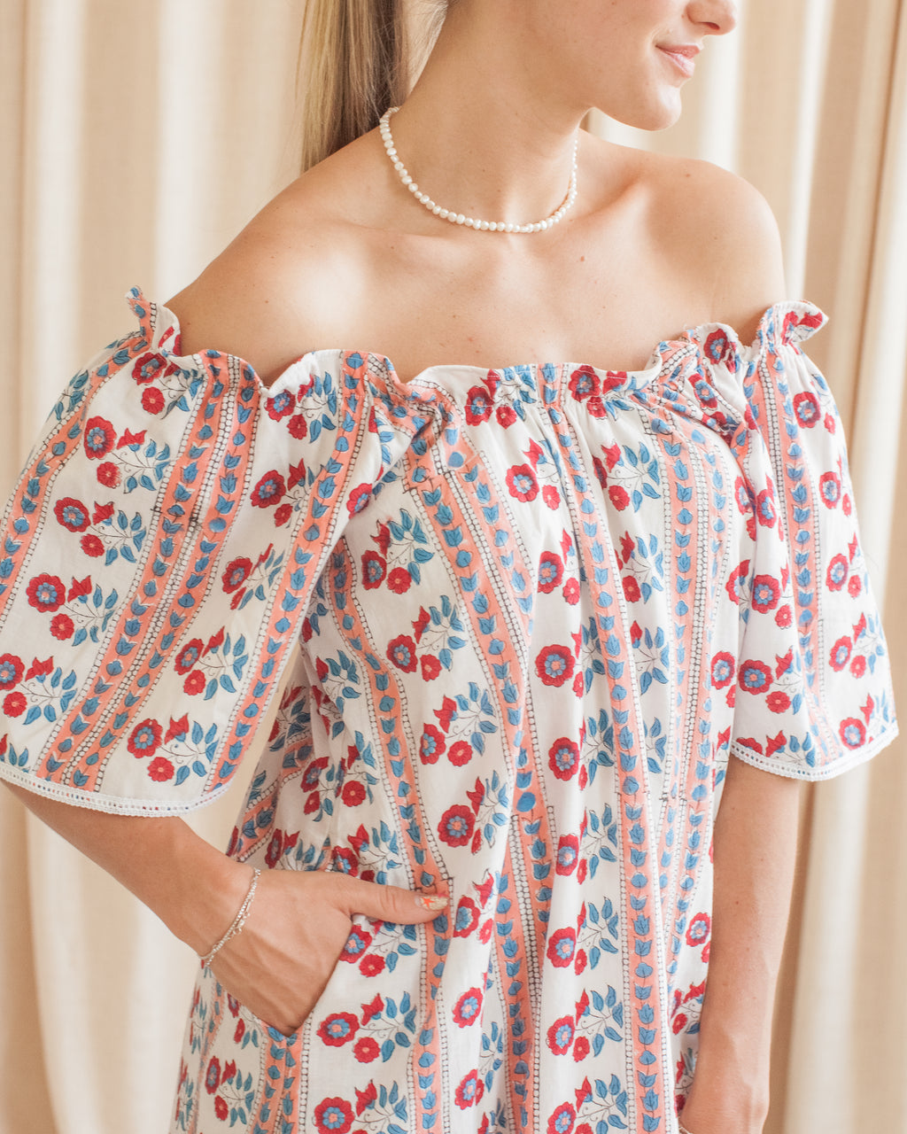 Designed by us, for you. Made by the same female owned workshop that creates our table top collection, each dress is crafted with hand block printed fabrics.