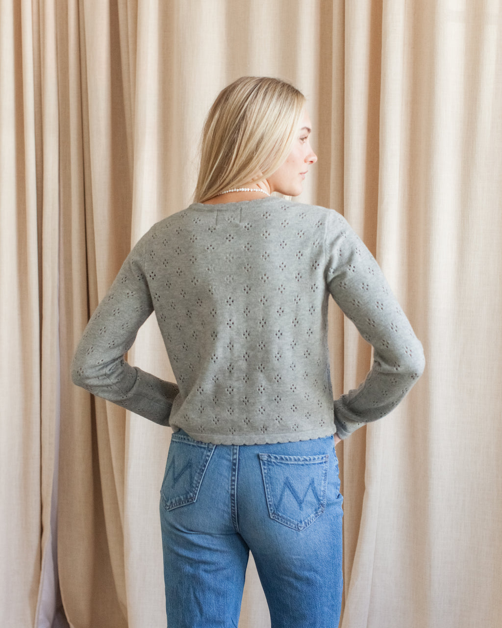 Mila Pointelle Cardigan- Grey