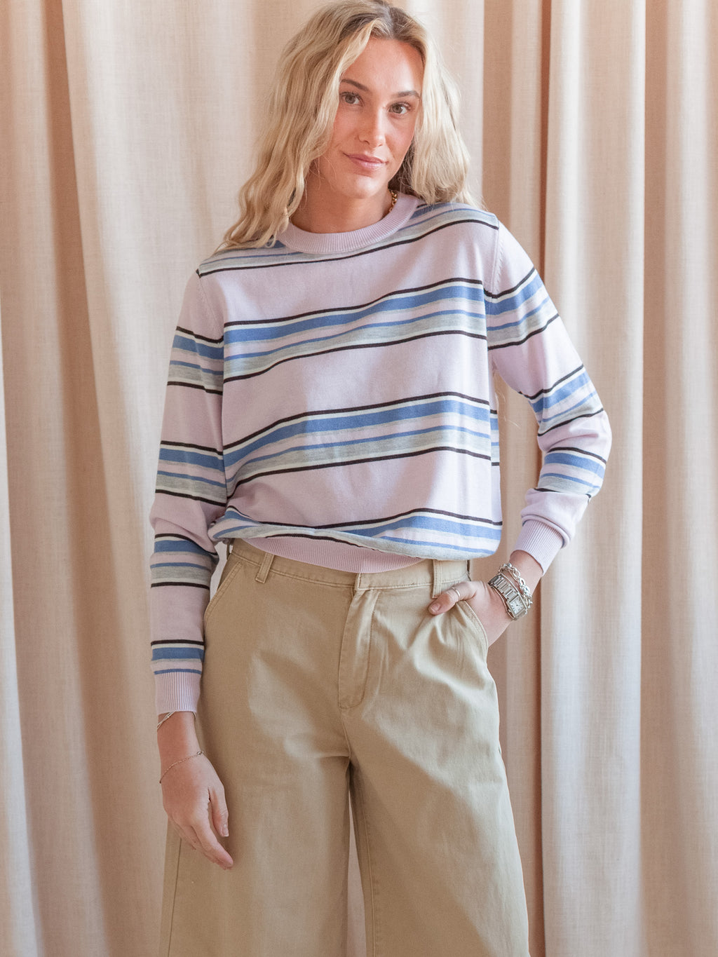 A closet staple, this striped long sleeve top is constructed from a lightweight knit that is perfect for layering. Pair under a button front jacket with denim and sneakers for an easy everyday look.