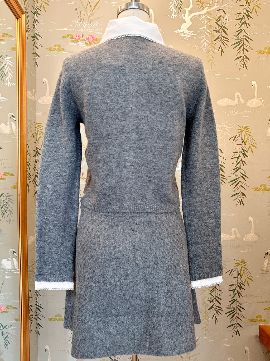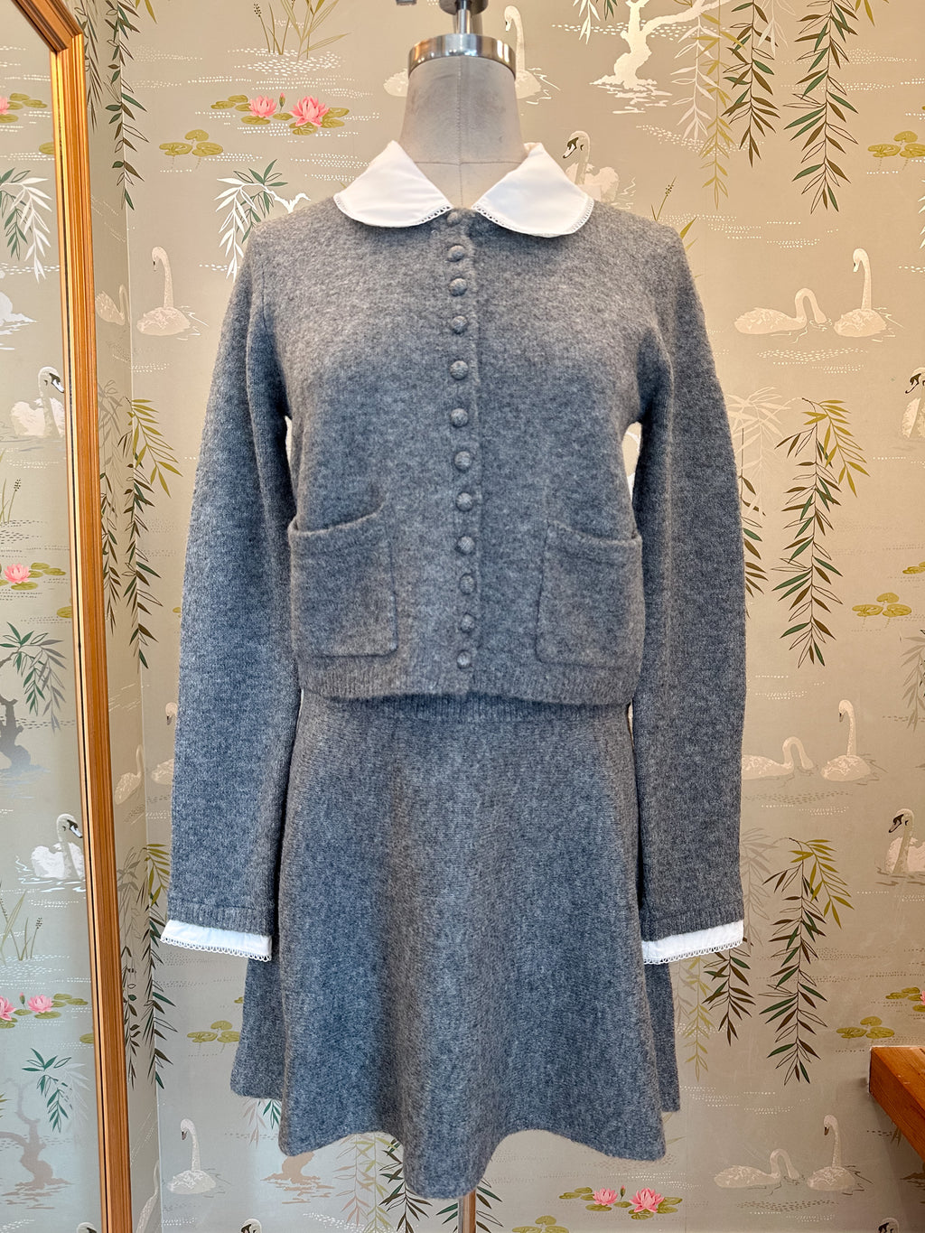 A soft knit A-line mini skirt with an elastic waistband. Pair with the Blaire Contrast Cardigan for a complete outfit.