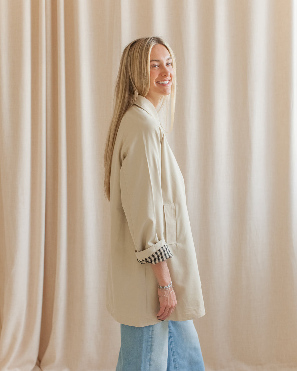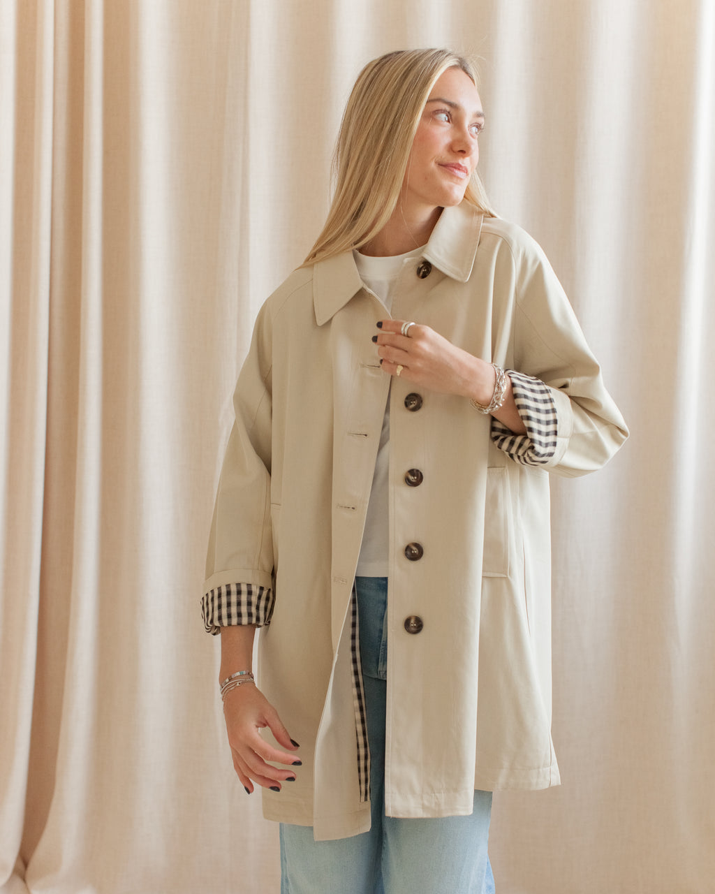 Featuring an oversized fit that adds interest to any silhouette, making it your new favorite layering piece for the transitional weather and a charming gingham lining.