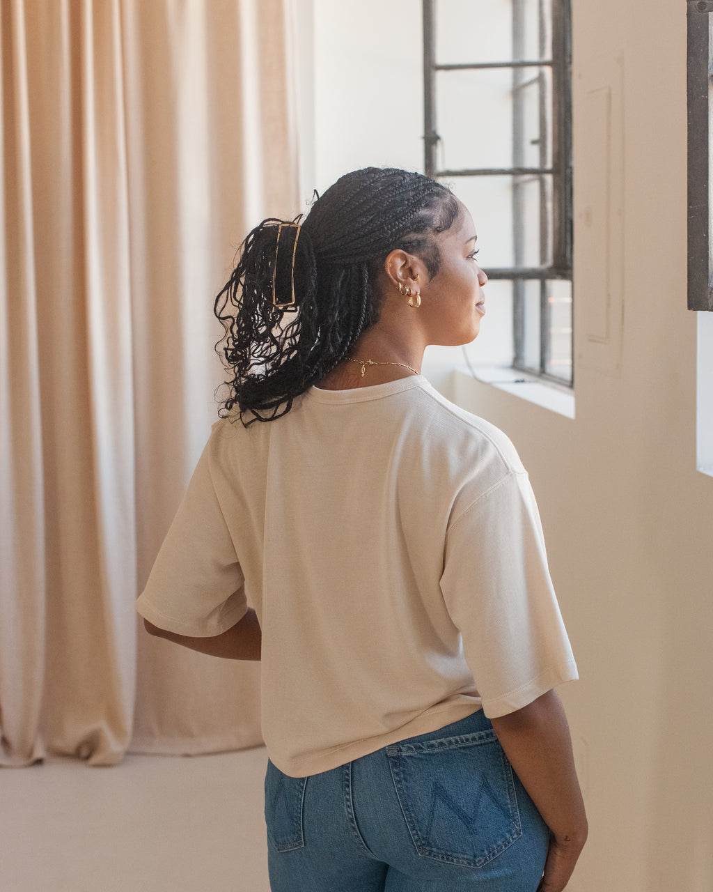A 100% cotton relaxed fit tee with a brushed cotton interior. Pair with denim or a skirt for a casual yet put together look.