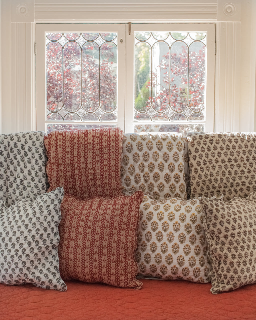 Another collaboration with our partners in India, our Maison de Frédéric bedding collection. Hand blocked prints made by artisans in India. The softest cotton blanket that’s perfect for the foot of a bed or movie nights on the sofa. Each quilt is complete with a scallop trim.